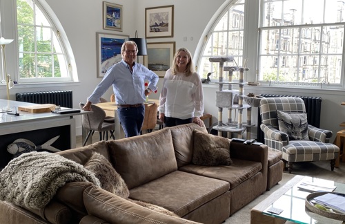 With a move hampered by the COVID-19 pandemic, the couple found their dream home at the refurbished former Boroughmuir High School, where they purchased one of our light-filled, three-bedroom corner apartments with original feature beams and beautiful crescent windows.